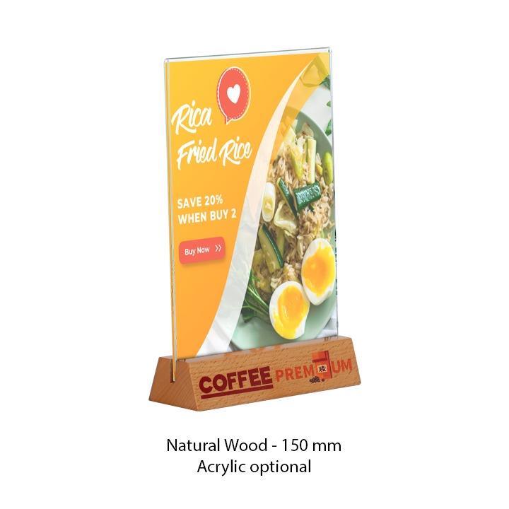 Επιτραπέζια ξύλινη βάση με ακρυλική θήκη 2 όψεων για μενού 15εκ.