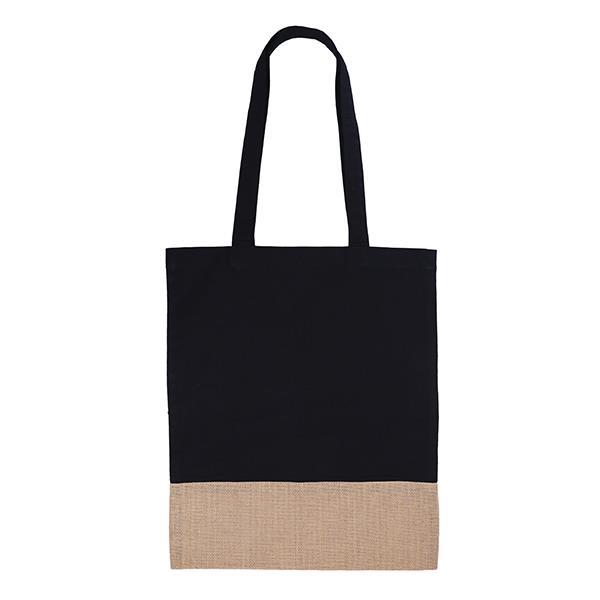 Τσάντα, Υ44×36εκ βαμβακερή, μαύρη με μακρύ χερούλι και βάση από γιούτα/λινάτσα